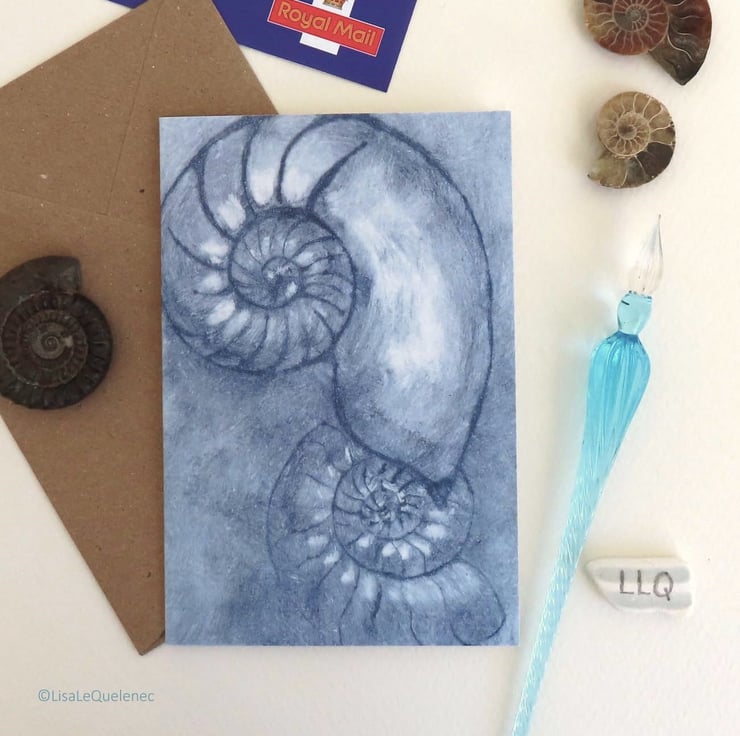 Ammonite fossil artist card reproduced from an original drypoint print. Perfect for fossil hunters and jurassic lovers.