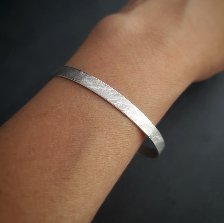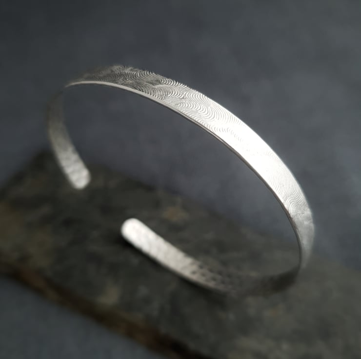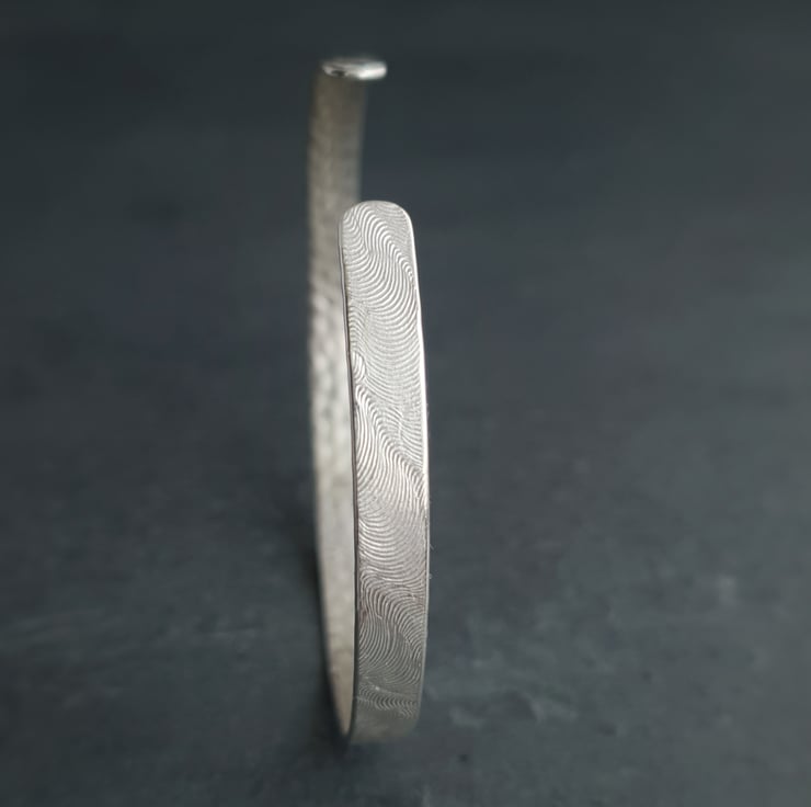 This Balance Me cuff bracelet has been handmade in textured sterling silver. The two different patterns decorating it represent two spiritual elements. Hidden within is the Earth texture while the outside pattern symbolises Water. The bracelet with its Earth and Water designs, is supposed to bring balance between constancy and change, stillness and movement in everyday life.