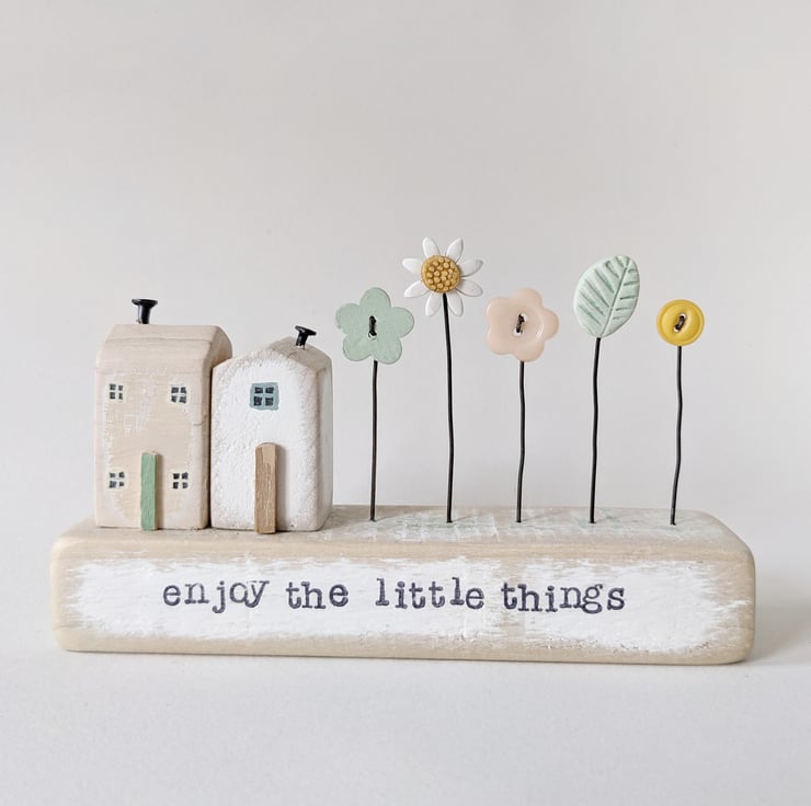 Hand stamped on the front are the words 'Enjoy the little things'.
