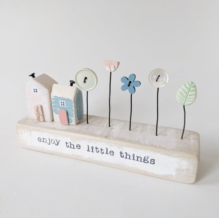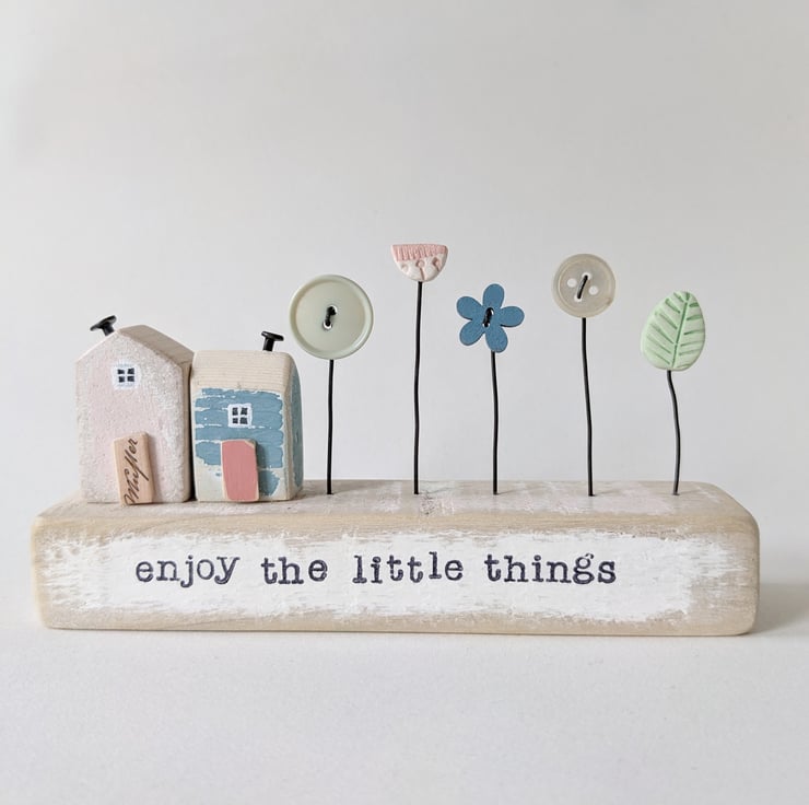 Hand stamped on the front are the words 'Enjoy the little things'.