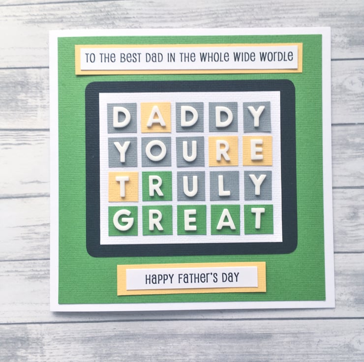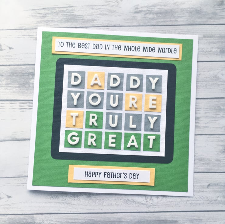 This quirky Wordle card is perfect for any dad who loves playing word games. There are two choices of greeting on the front - Happy Father’s Day or Happy Birthday - depending on the occasion. Simply select your preference from the options given.