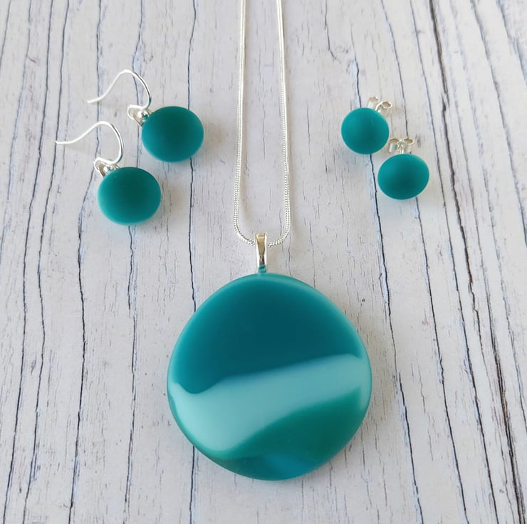 This pendant is a great match for my teal earrings; if you would like to add a pair of earrings to make a set please select the appropriate option on checkout.