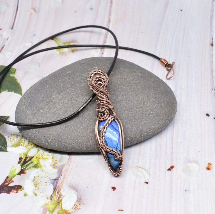 The pendant hangs from a complimentary leather or cotton cord, or you can choose a matching copper chain with a handmade clasp.