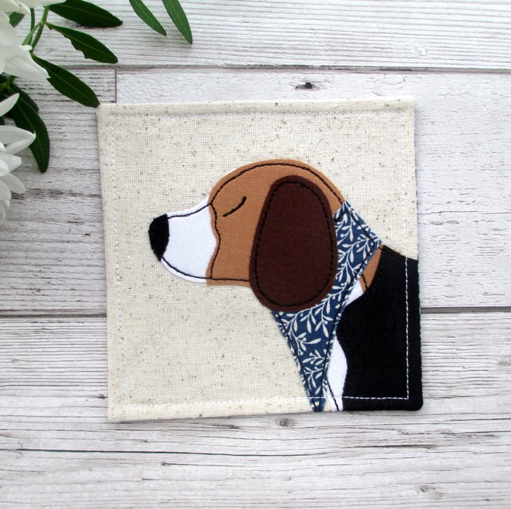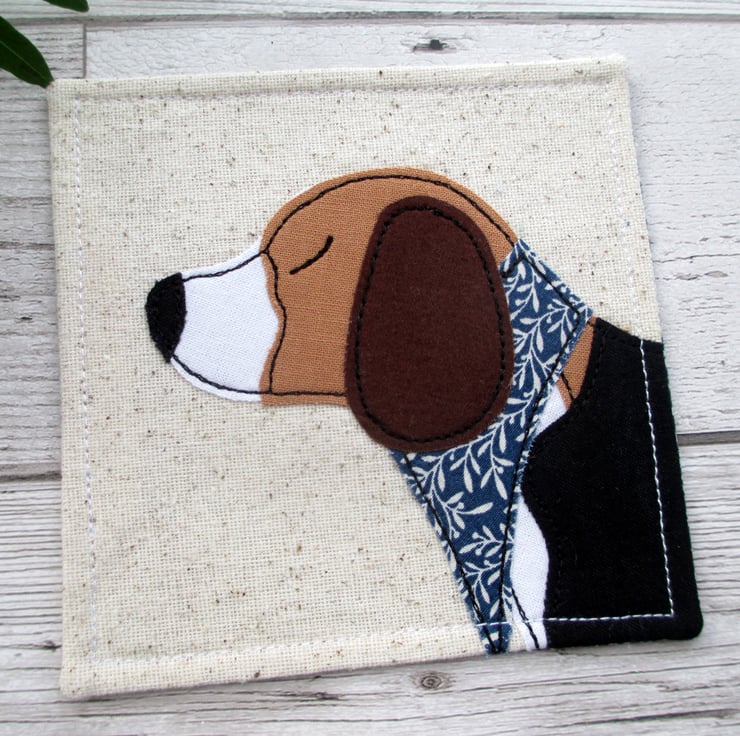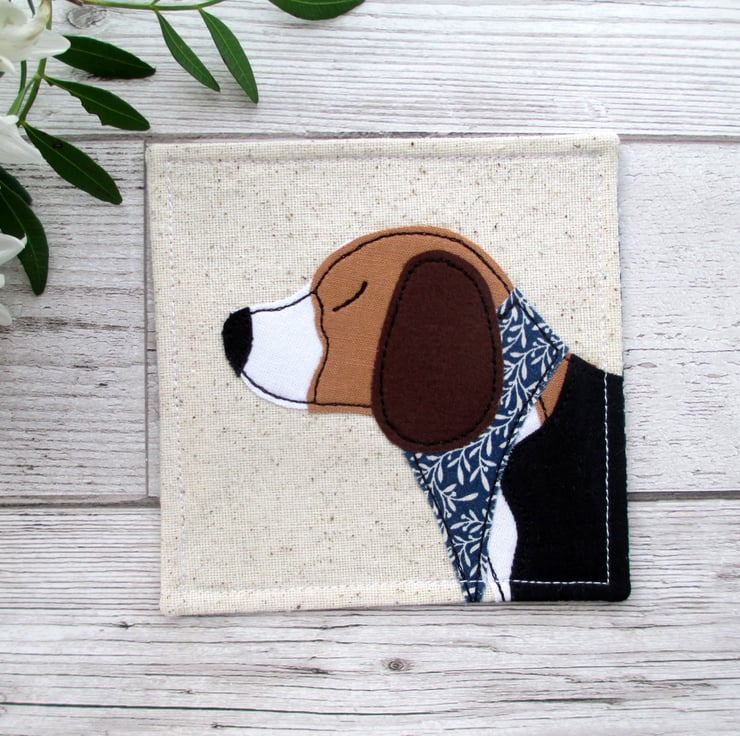 A fun coaster featuring a beagle wearing a blue neck tie, a cute gift idea for any beagle lover.