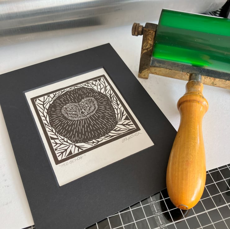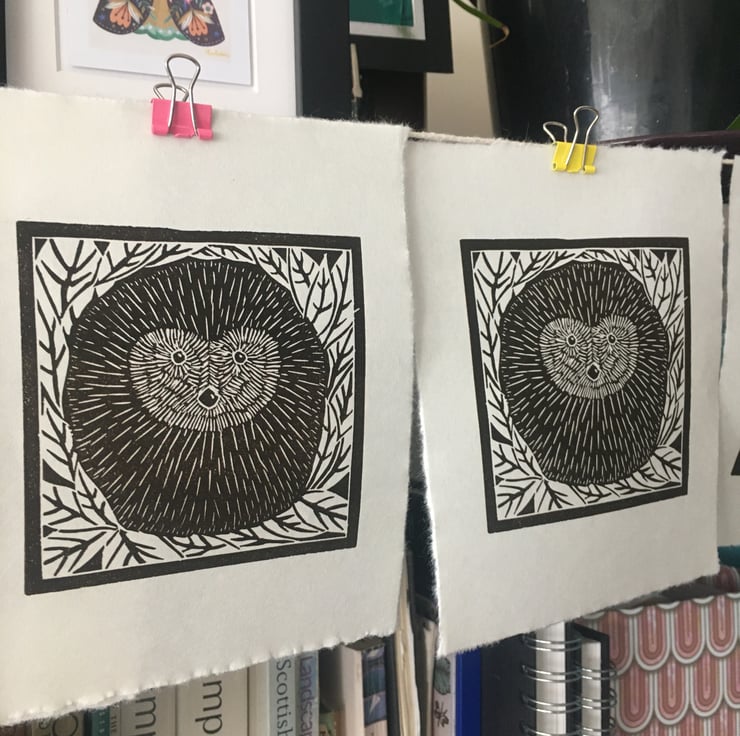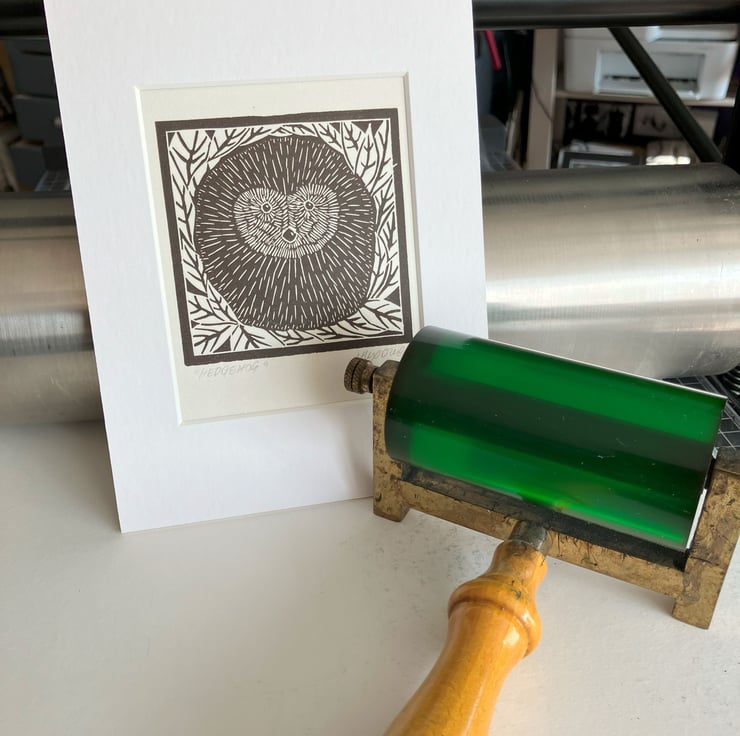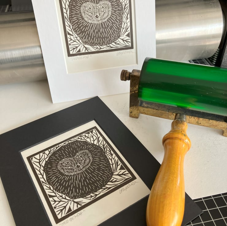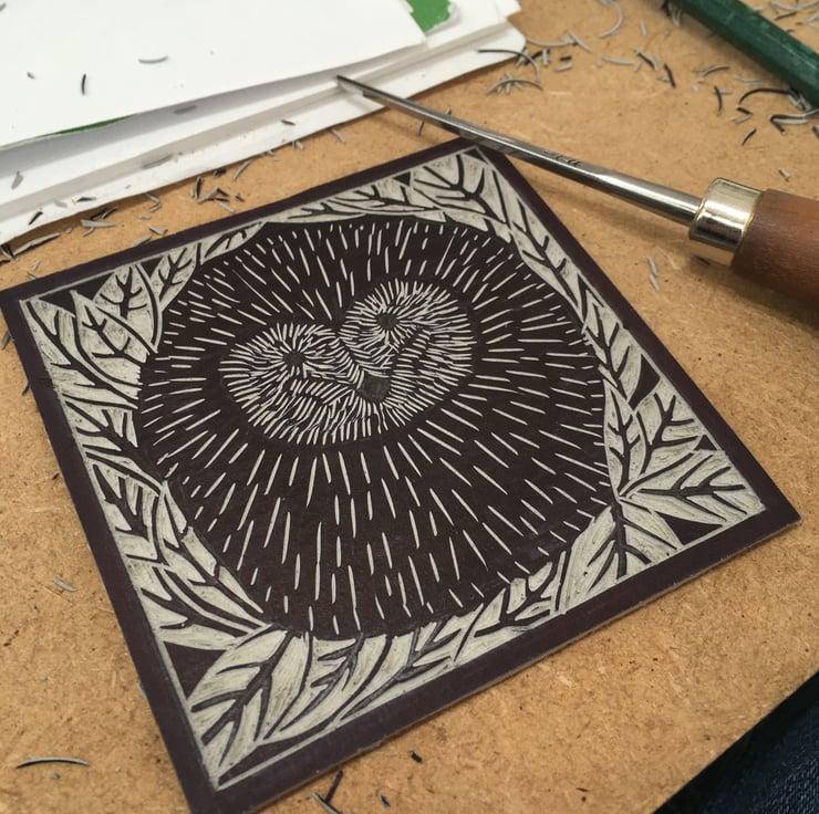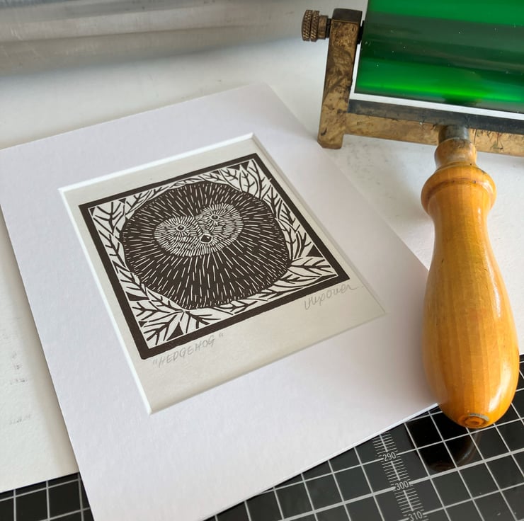 I love creating my little animal and bird linocut prints. So many of us love Hedgehogs and I was delighted to finally make a little linocut print of this little hog - I hope I've captured a little of his personality...