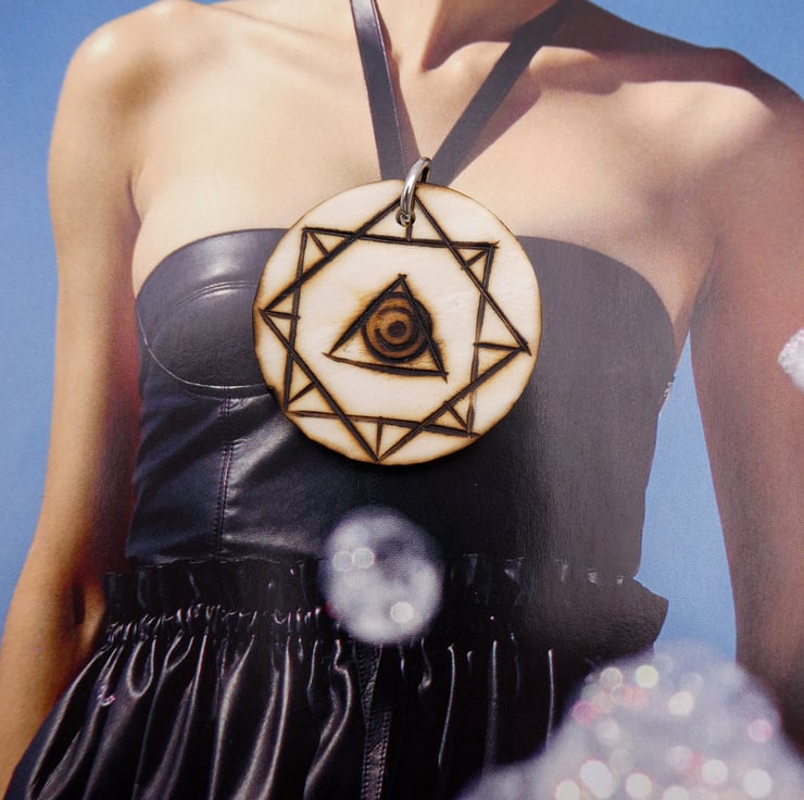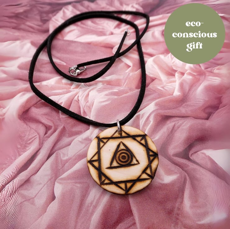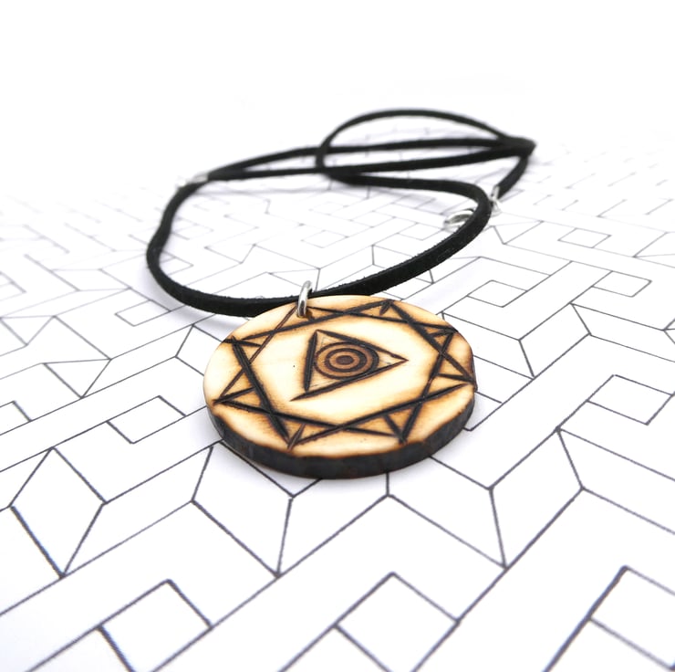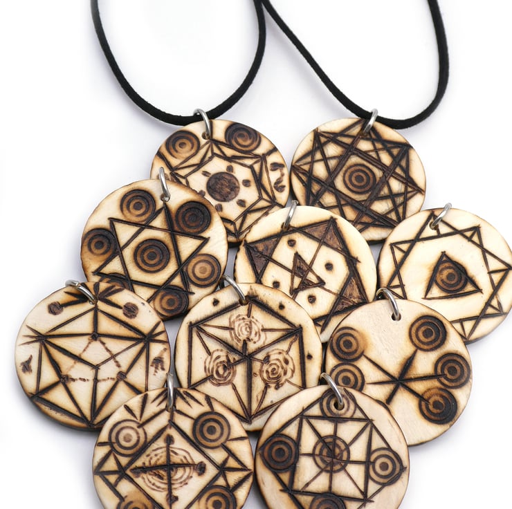 Sacred geometry pendant, spiritual medallion, wooden pendant