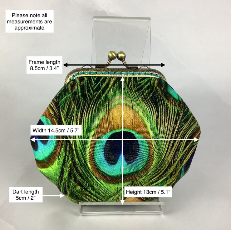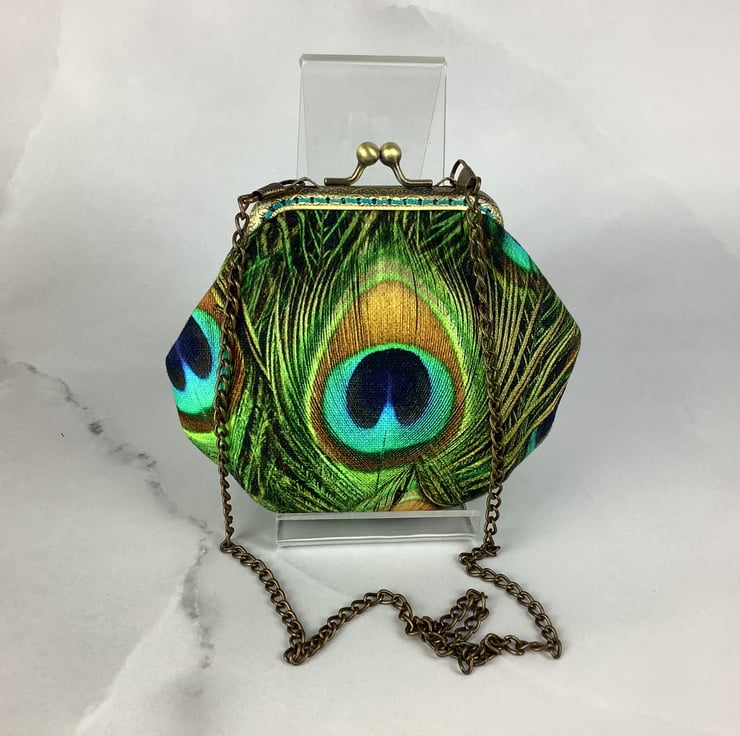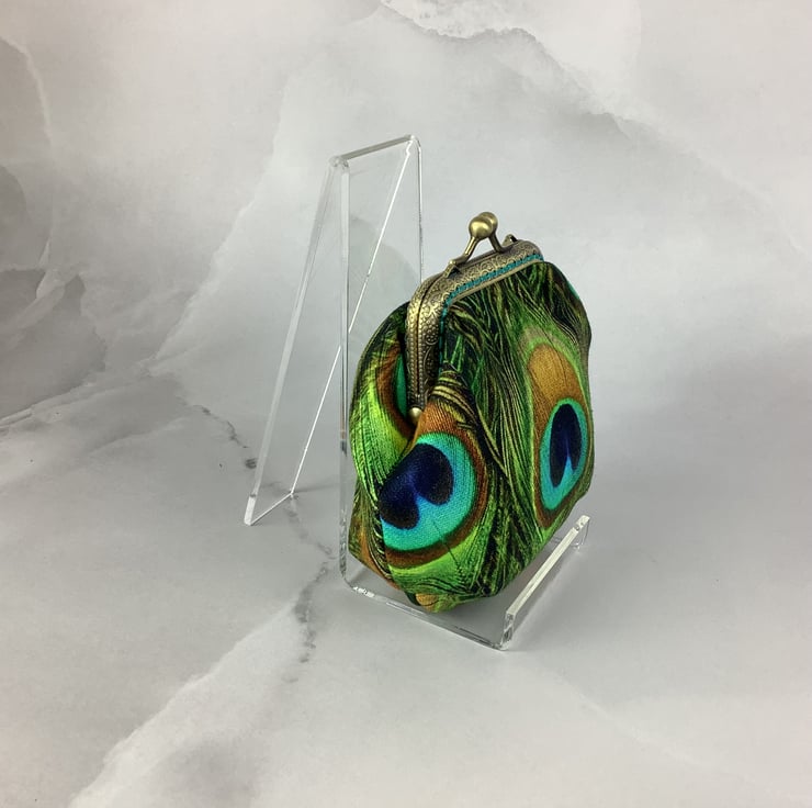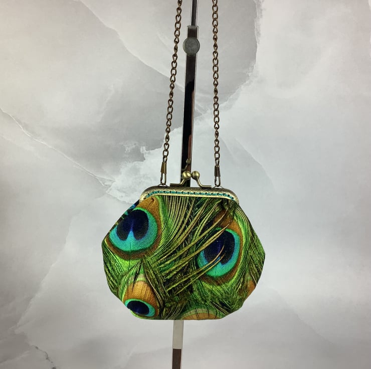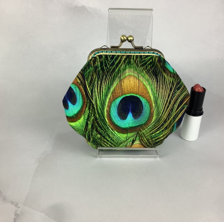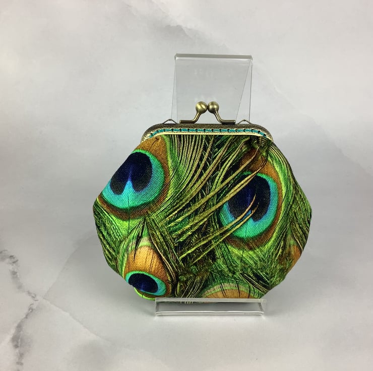 Peacock Feathers coin purse, frame purse, Optional chain, Handmade