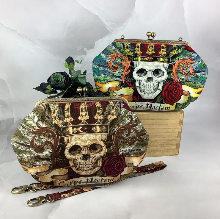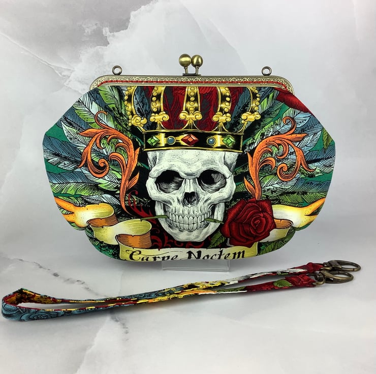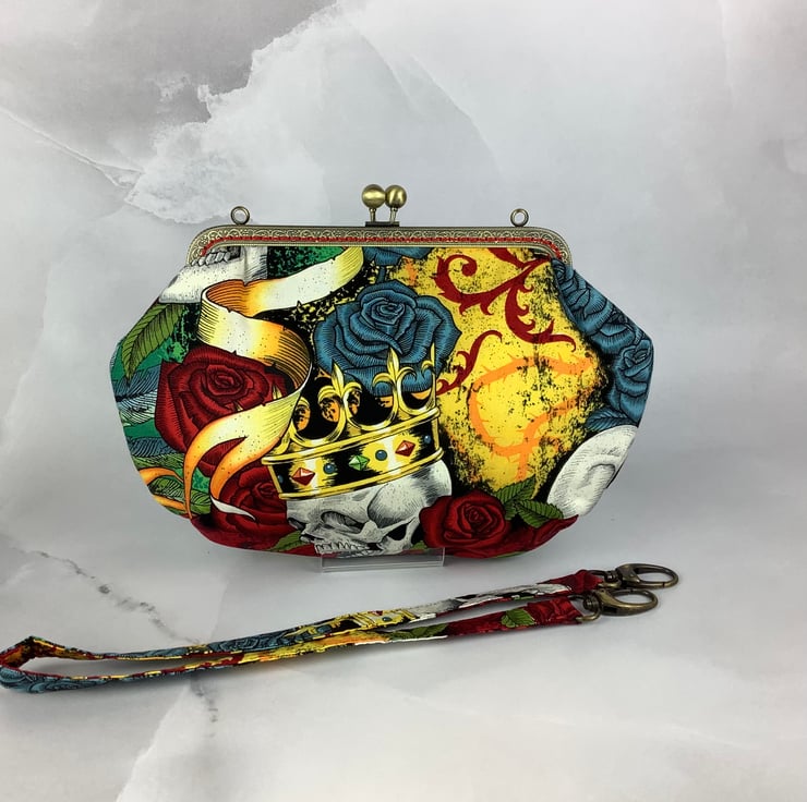 Crowned skulls medium clutch bag.
