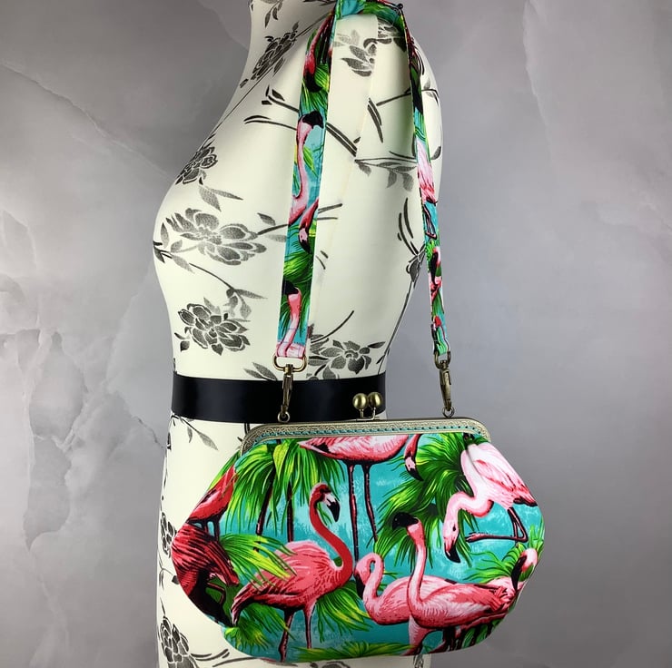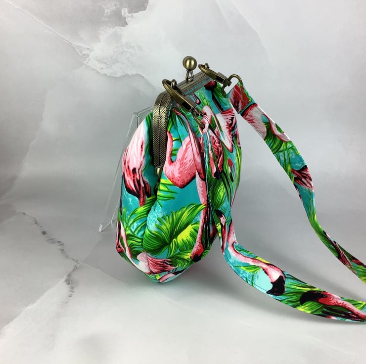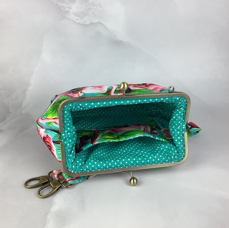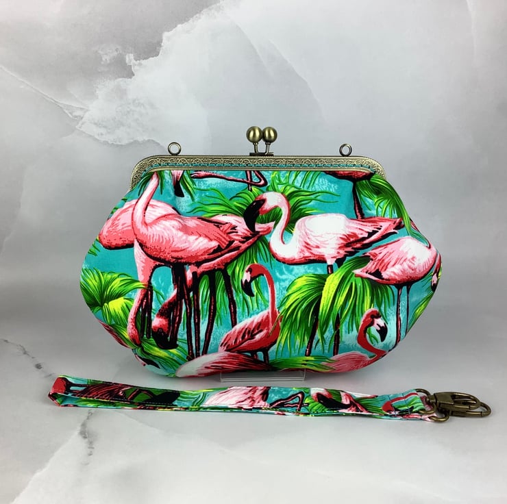 Flamingos medium clutch bag, Detachable strap, Handmade