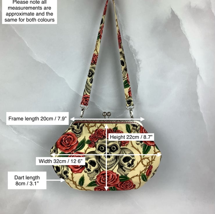 I have lined them in a rich red mottled cotton and the matching detachable shoulder length strap allows it to sit comfortably on your shoulder.