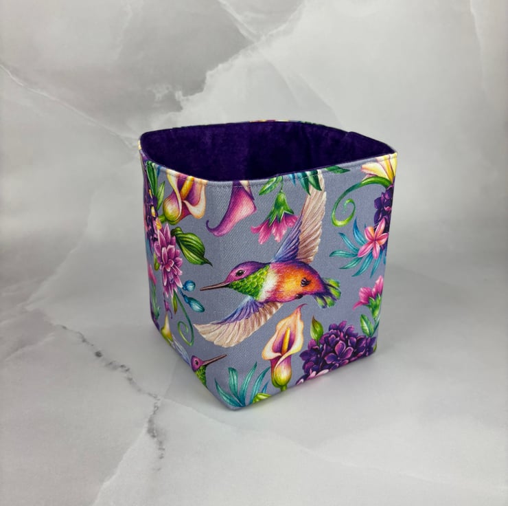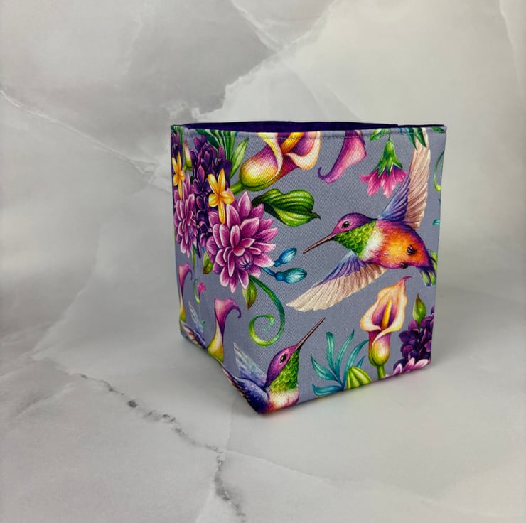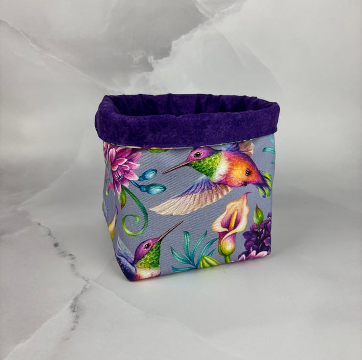 Hummingbird fabric basket.