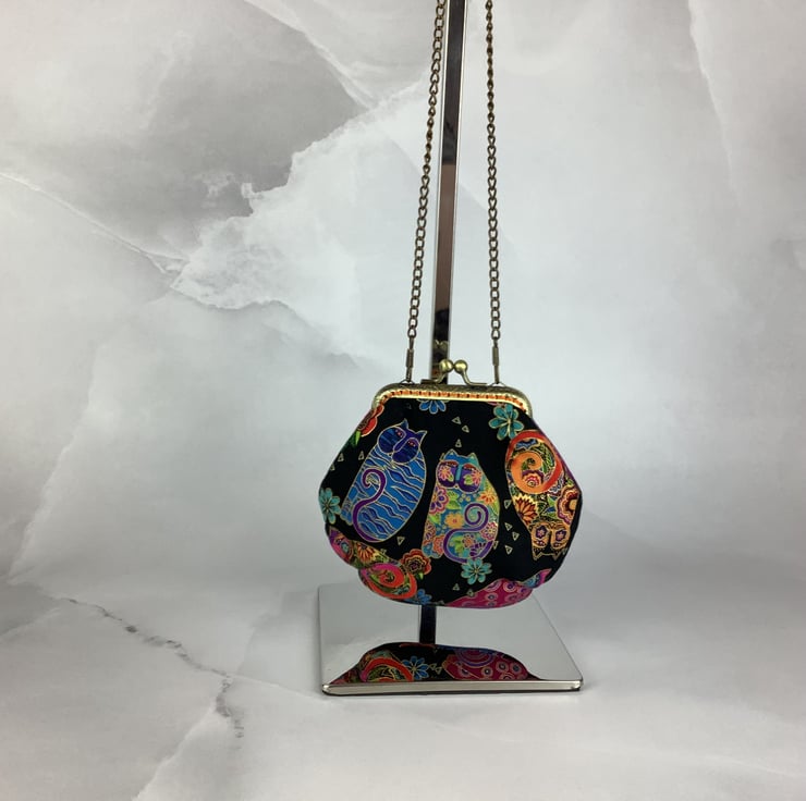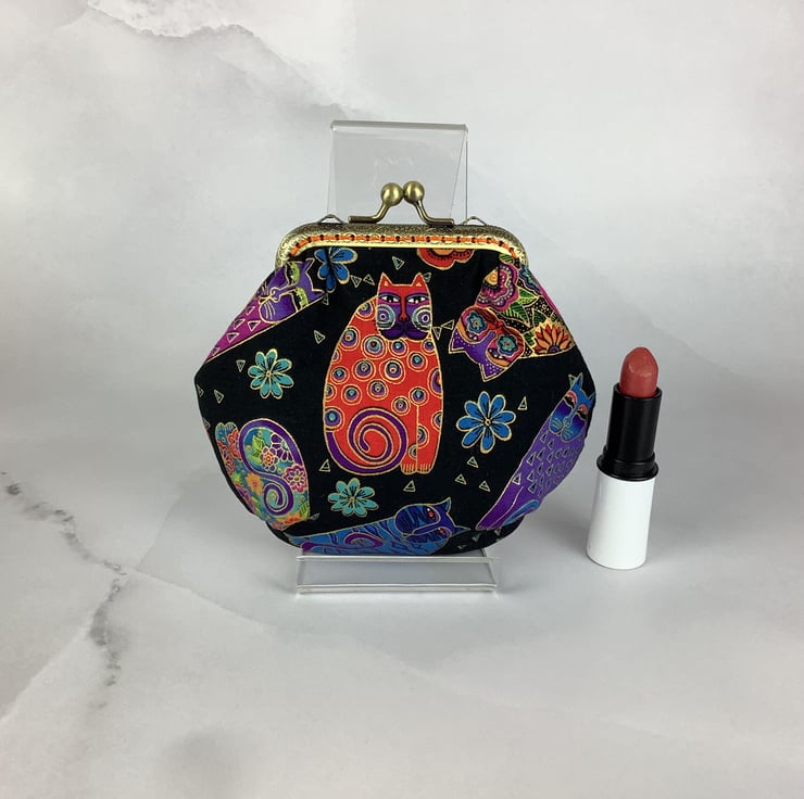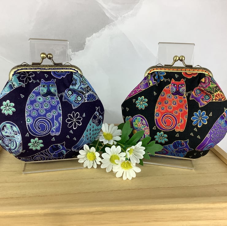 Handmade kiss clasp coin purse in a fun cotton fabric in a choice of colours.