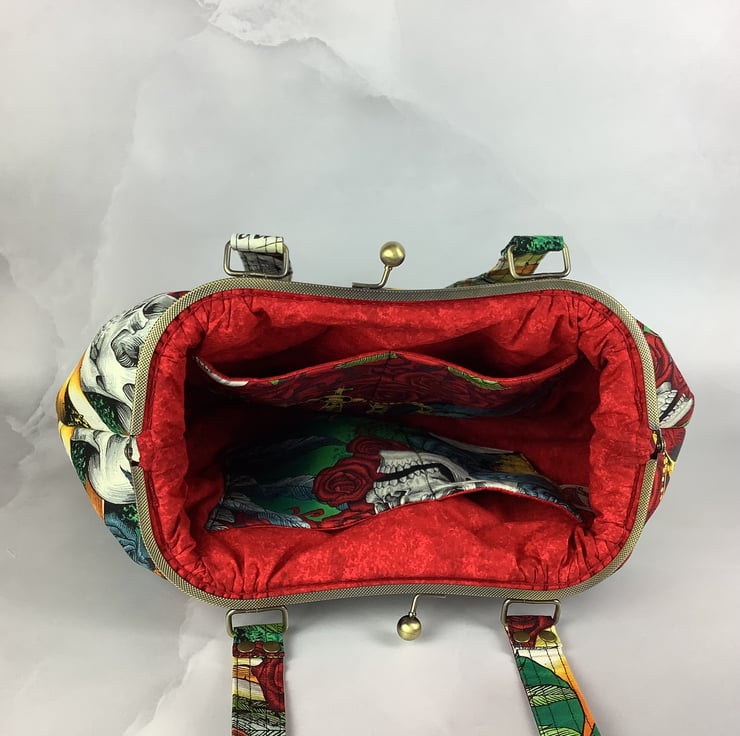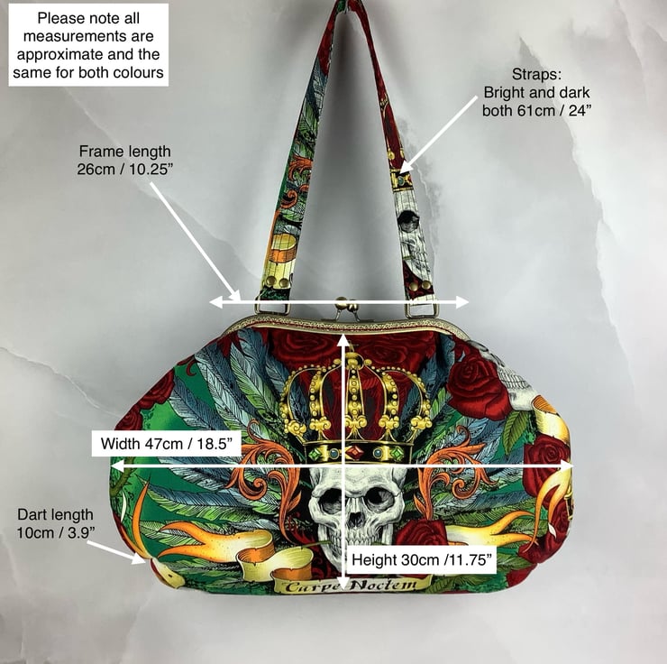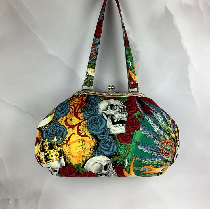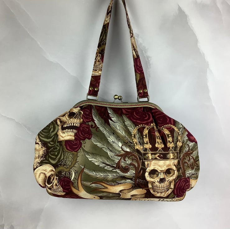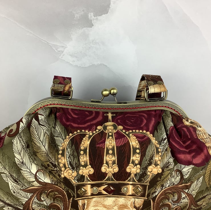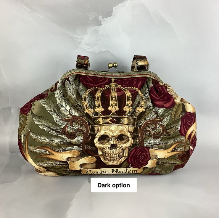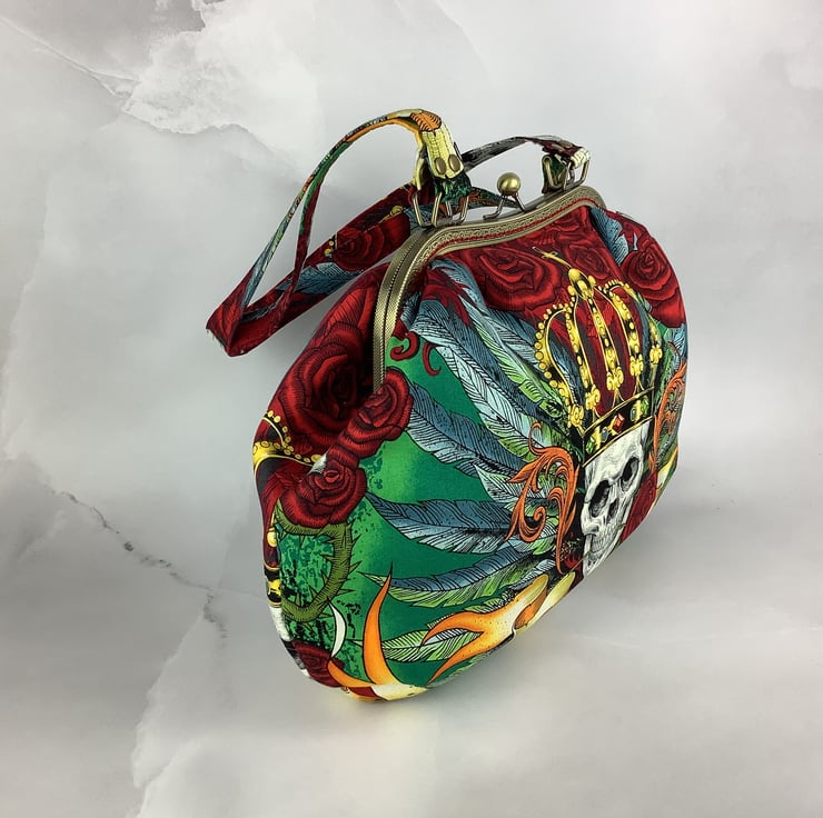 Handmade kiss clasp bag in a choice of stunning gothic cotton fabrics.