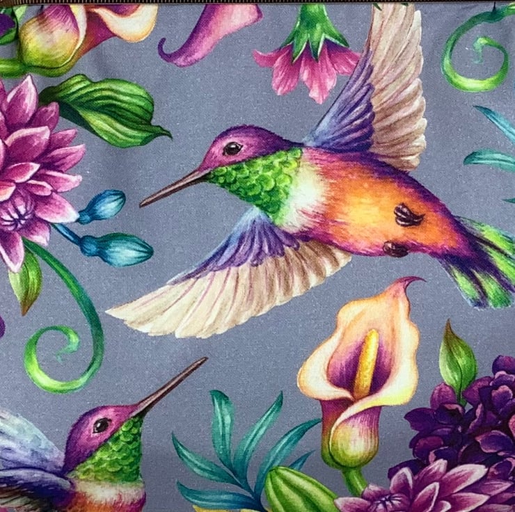 I was very lucky to see hummingbirds in the wild. Their jewel-like colours and hovering flitting movements are quite mesmerising. When I first saw this fabric I was reminded of this and had to have it.