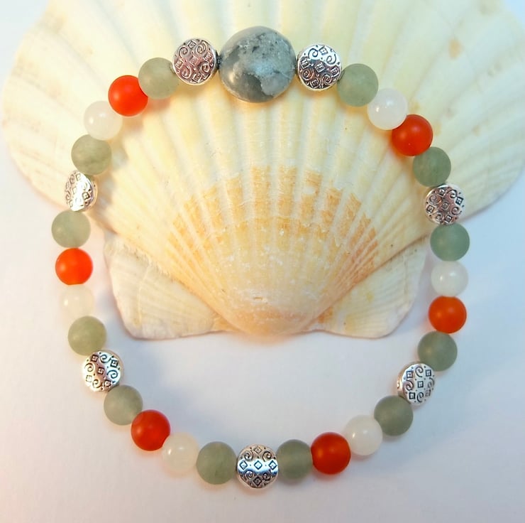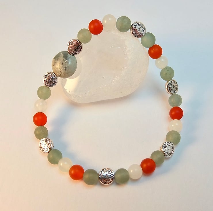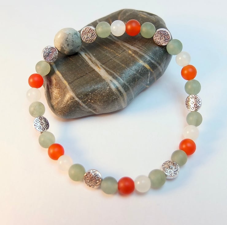 Green Aventurine, Carnelian and New Jade Men's Bracelet - Handmade In Devon.