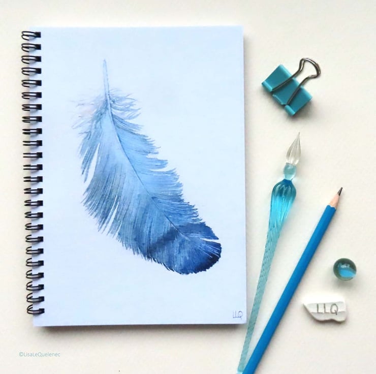 A blue feather reproduced from my original watercolour painting features on this A5 spiral, lined notebook measuring 15.25x20.25cm (6x8.25inch approx) would make a lovely gift. Perfect for recording your thoughts, dreams and desires or maybe those important notes on your latest project.