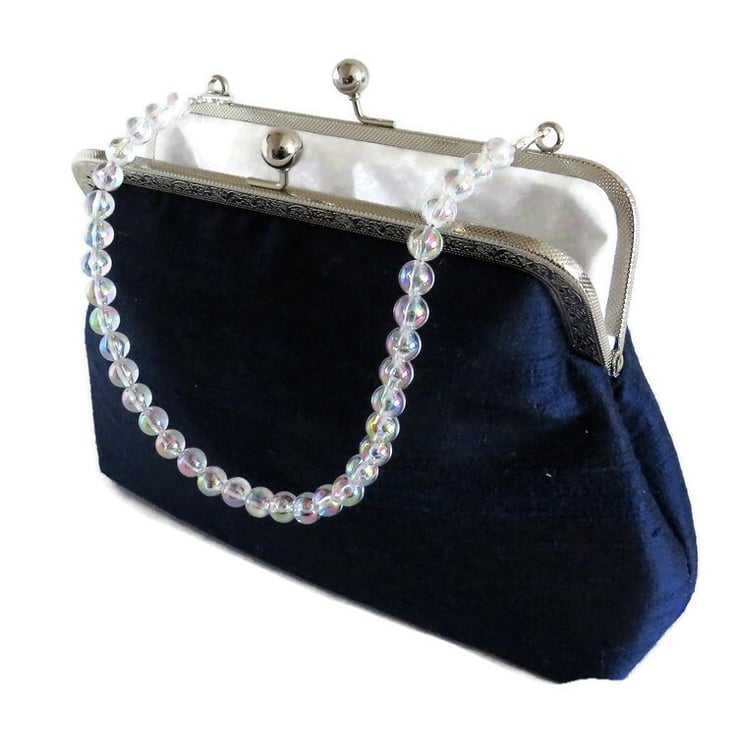 Handmade quality bag with silver tone kiss lock frame. (The frame of the clutch may vary between a plain silver frame or a decorated embossed frame depending on what i have available ) ...If you have a particular choice , please message me