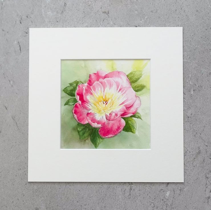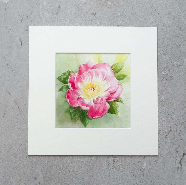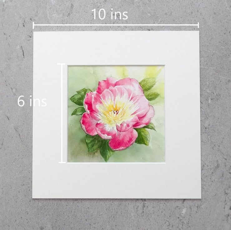 My original watercolour Peony painting 'Bow of Beauty' comes with a quality soft white mount and backing board ready for framing. It has been painted using quality paints on 300gm acid free cold pressed watercolour paper and comes with a Certificate of Authenticity.