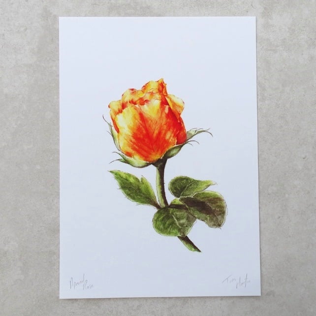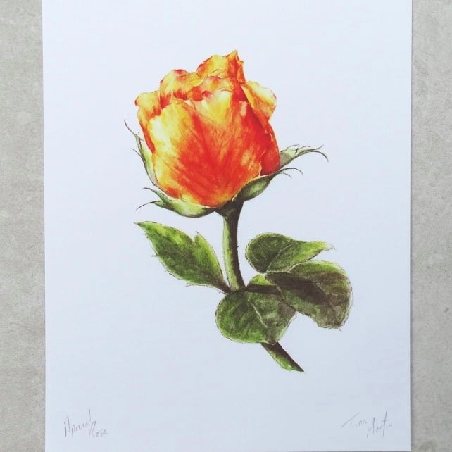 This is an A4 bright digital print of my own original watercolour 'Apricot Rose'