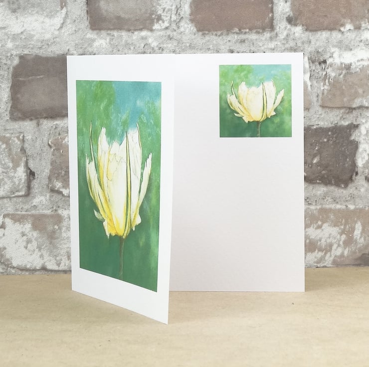 My blank Tulip card has been printed using my own original artwork on to new white matt textured 280gsm card which has been FSC approved.