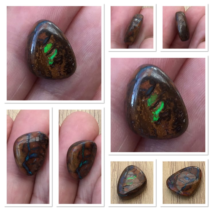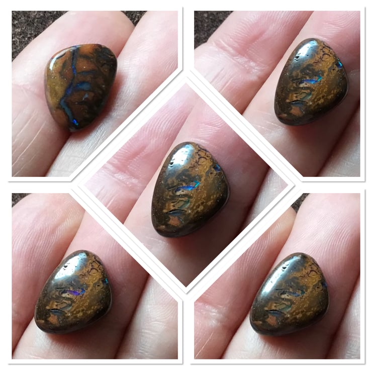 Photos were taken in natural light, however, the colour play still is far better in the hand. Opals are so difficult to photograph successfully.