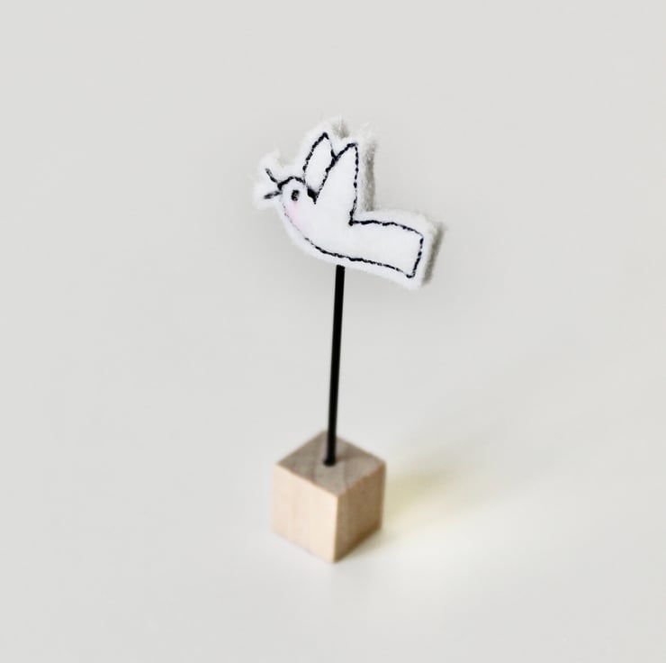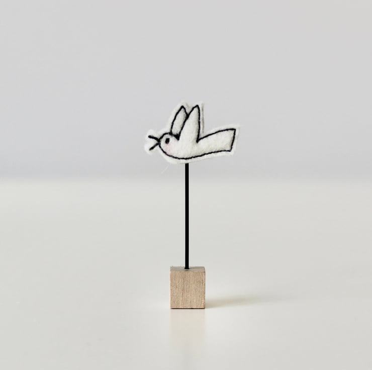 Each birdie is created using multiple layers of 100% wool felt; sewn using freehand machine embroidery and then cut out by hand.