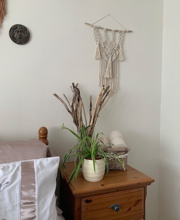 The length of the branch is approximately 45cm and the entire piece is 70cm long from the hanging point. The length of the macrame work is 57cm