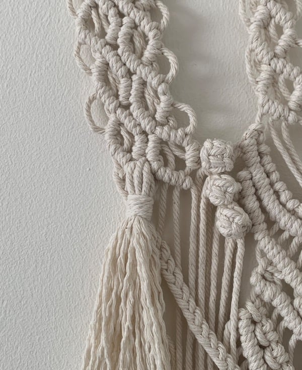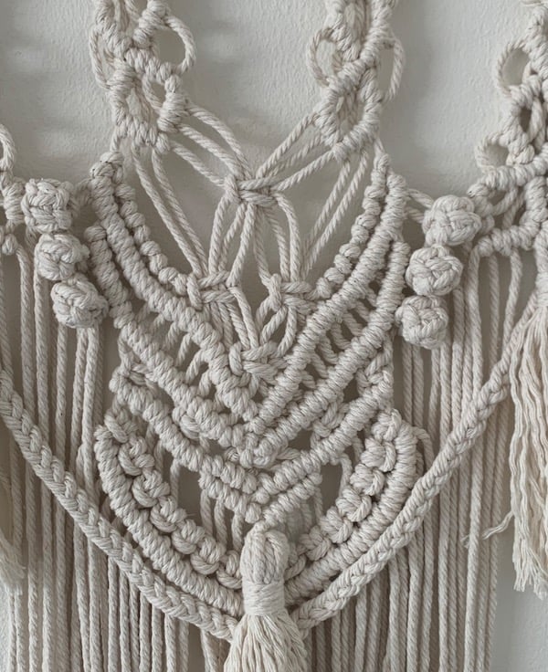 In macrame, it is not just about the knots, the spaces speak volumes too! This piece was lovingly created for its more 'Lacey' and softer appearance.