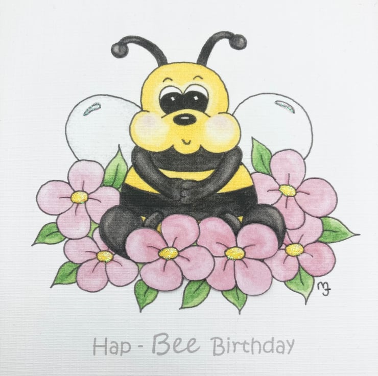 The wording on the front of the card reads ‘Hap - Bee Birthday’.