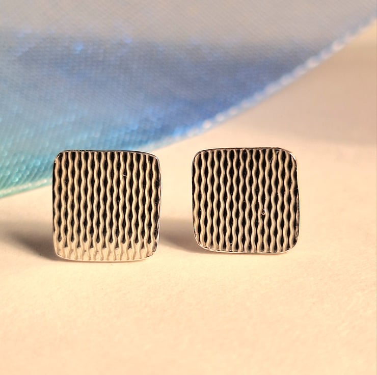 These lovely little earrings are made from a cigarette case, hallmarked 1956. I've tried to retain as much of the original cool texture as possible in these simple classic studs.