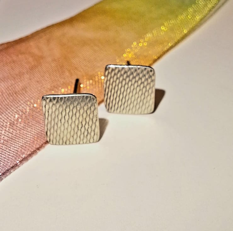 A dinky pair of textured silver studs - with silver posts and surgical steel backs. Easy to wear and all upcycled - what's not to love?!