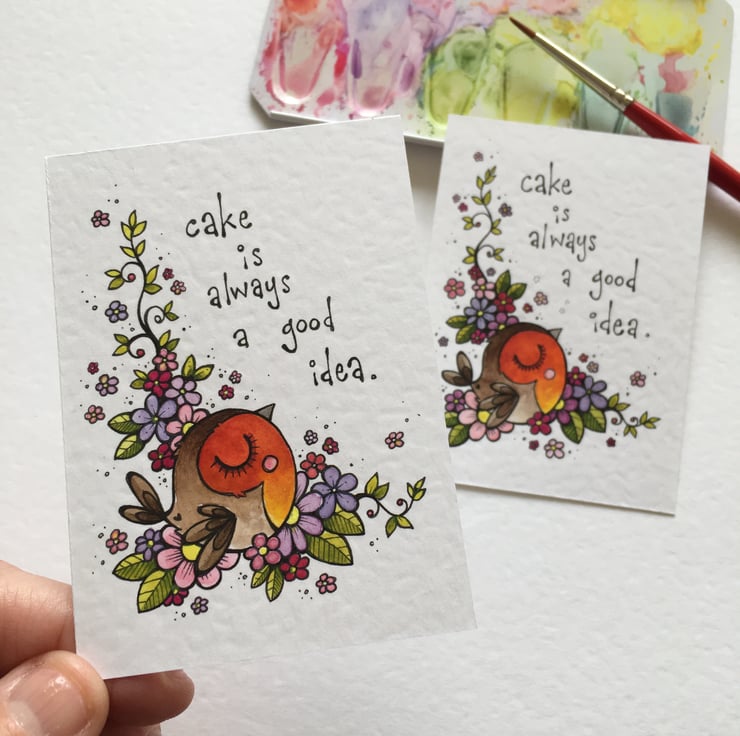 original artwork in artists pens and watercolour paints, on textured white 300gsm cardstock. drawn with a tiny 0.05 nibbed pen, and carefully painted with just the very tip of a tiny paintbrush.