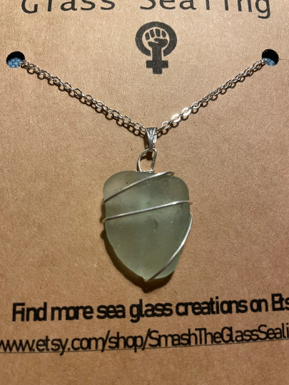 Sea glass necklace. Silver plated 18 inch chain and silver plated wire wrap.