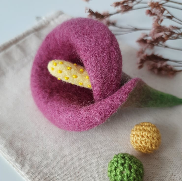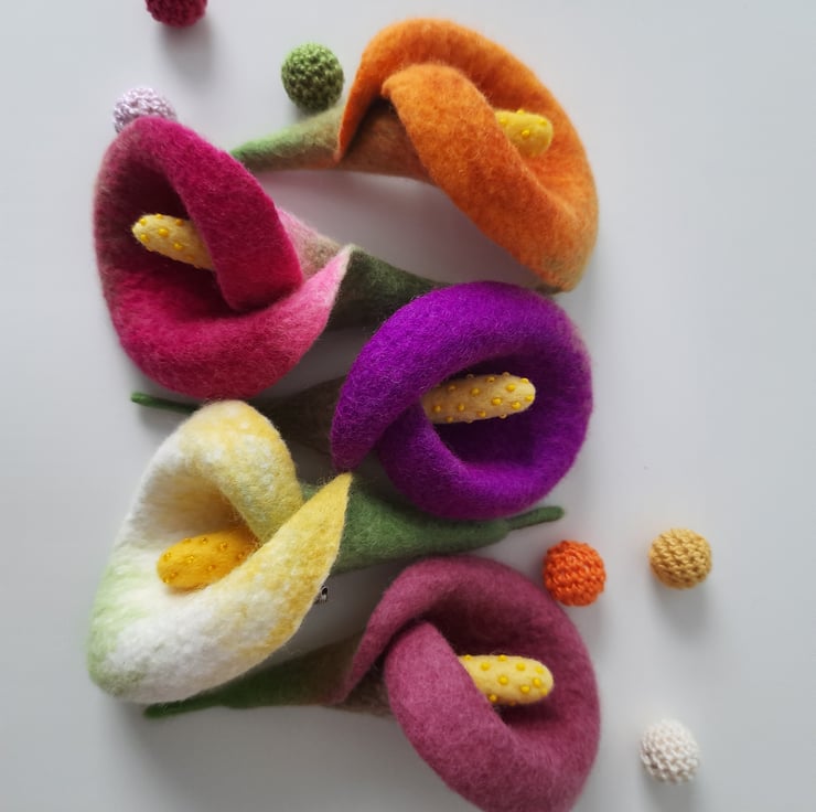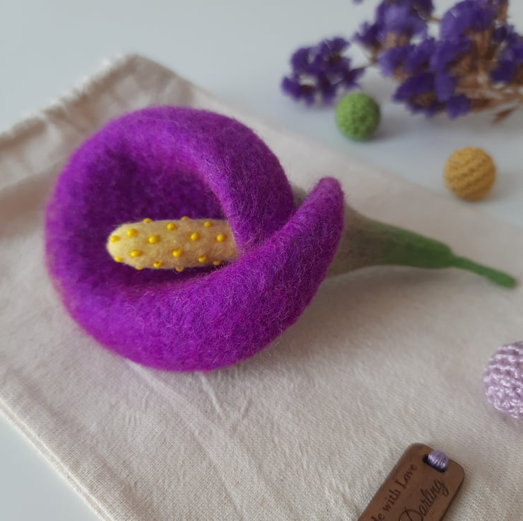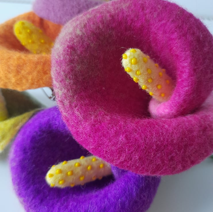 A simple statement piece- inspired by our love of flowers, this wet felted piece is a tactile translation of the elegant Calla Lily.