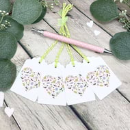 This cute bee card has been designed using my own original illustration. The image has been printed out onto good quality white linen embossed card and decoupaged up in parts. I have also added a little glitter detail.