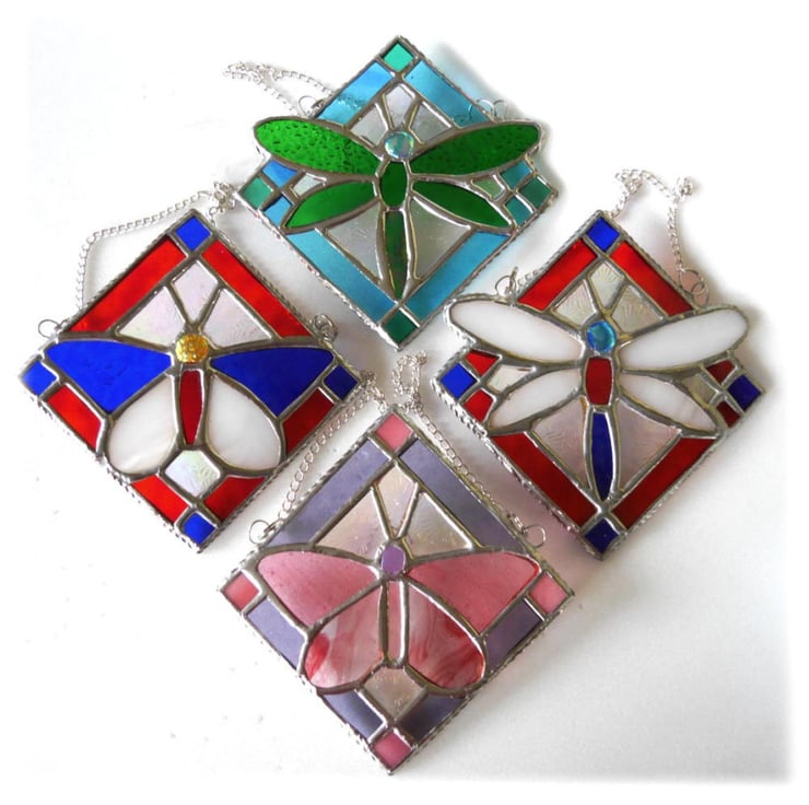 This is a stained glass suncatcher made using the Tiffany copper foil technique.