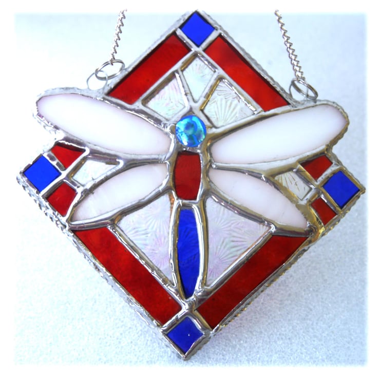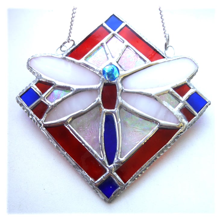 A Dragonfly tile in glorious red, white and bllue, very patriotic.