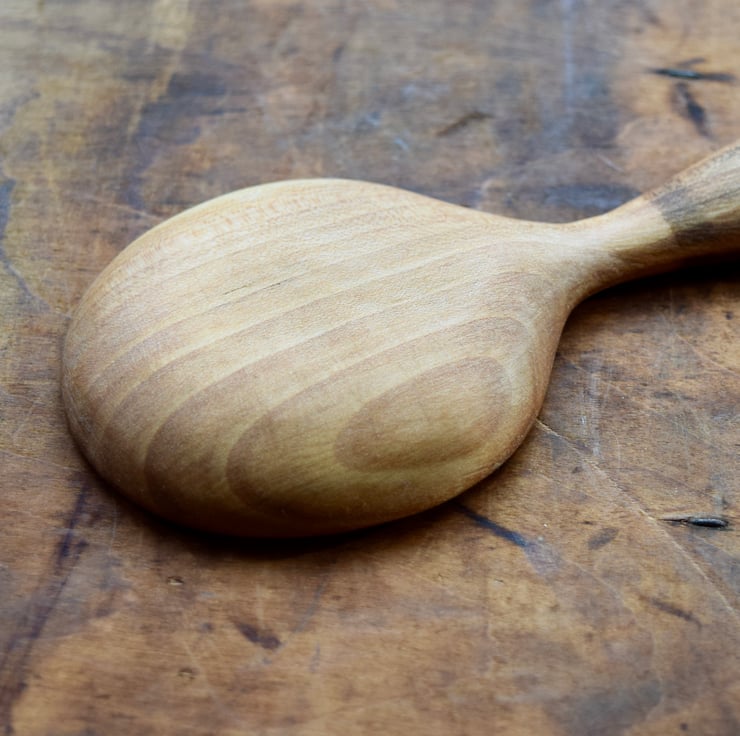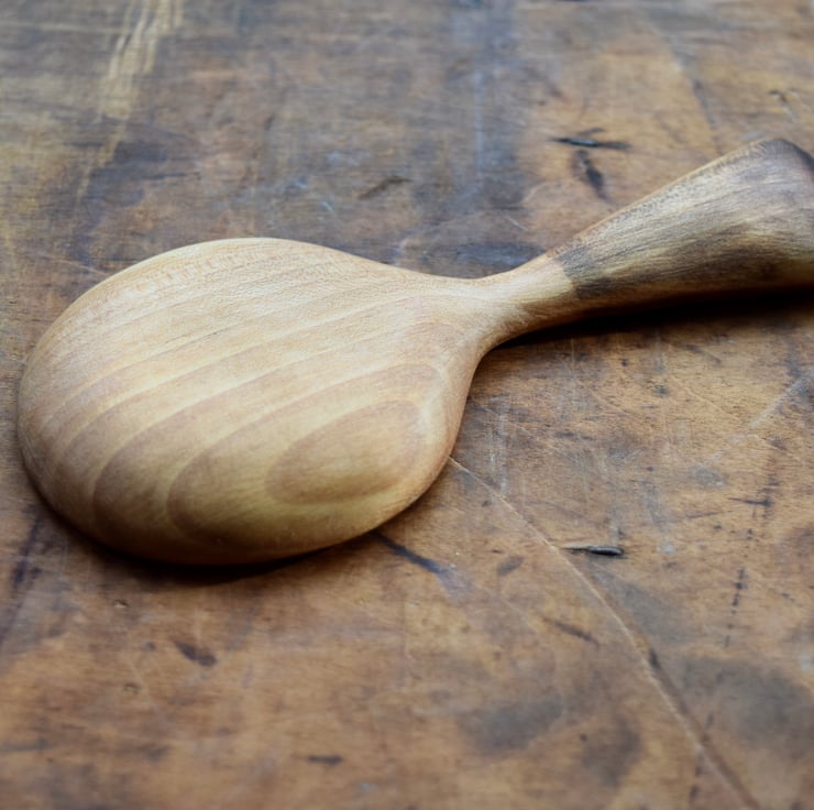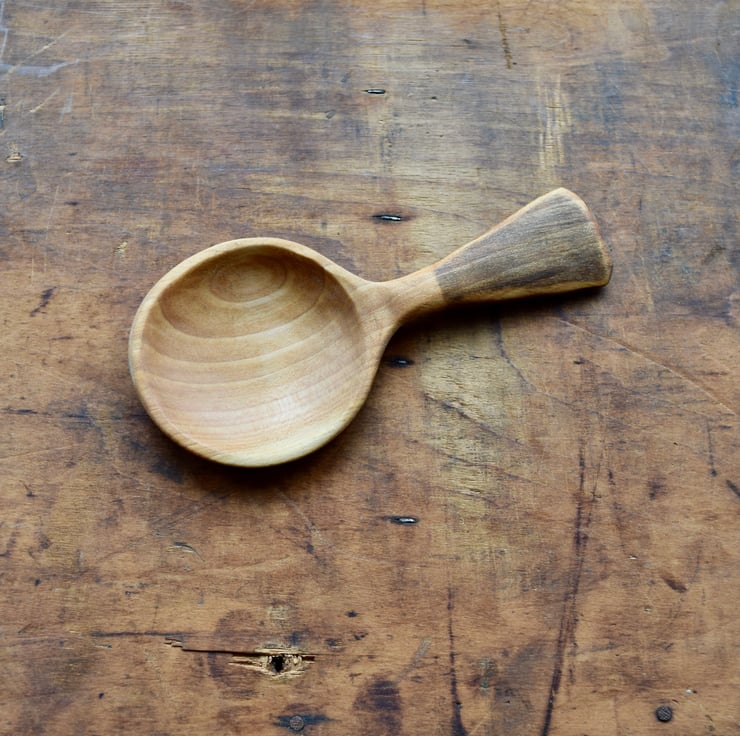 I sourced the silver birch wood from a customer, after a storm had blown over a tree in their garden. This scoop was made from a small section of the wood and the shape of the off cut guided me towards carving this small, shallow design.