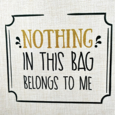Fun and quirky tote bag with the saying 'Nothing in this bag belongs to me.'