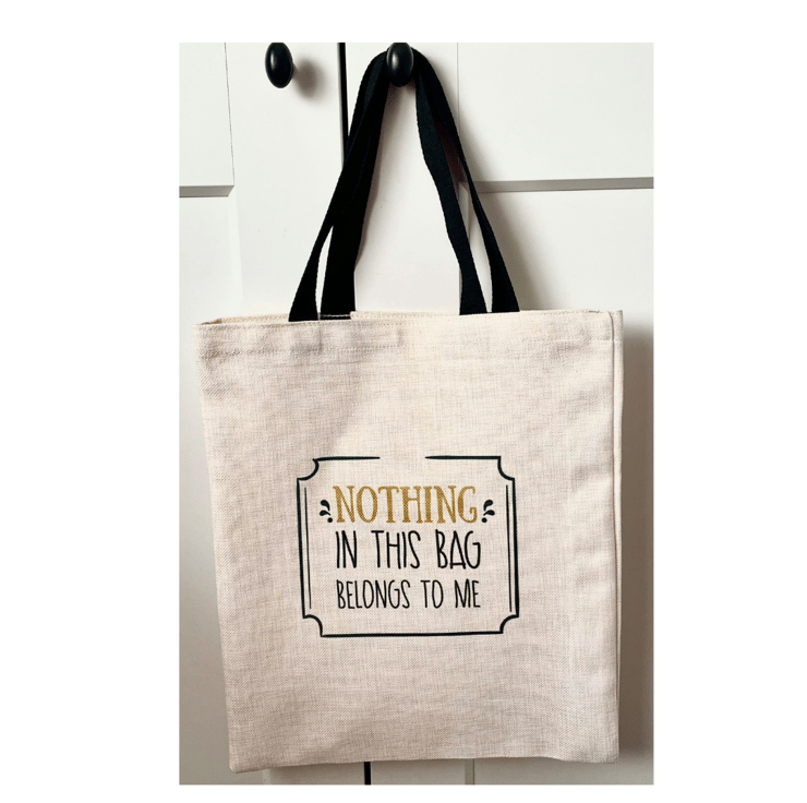 Fun and quirky tote bag with the saying 'Nothing in this bag belongs to me.'
