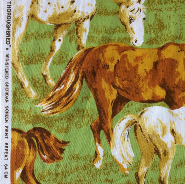Appaloosa Chestnut Horse Foal Lampshade in Sheridan Thoroughbred vintage fabric option - a fabulous Sheridan vintage fabric, Design is called Thoroughbred. But are those dapple greys or appaloosas? i think the latter( though I've never seen an Appaloosa thoroughbred)