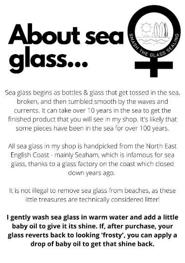 What is sea glass I hear you ask? Treasure of the sea! Seaham is a world-renowned spot for hunting sea glass, thanks to the old glass factory on the coast. Glass tossed into the sea years ago has been tumbled by the waves, sand and rocks to make perfectly formed treasures of all shapes, sizes and colours.
