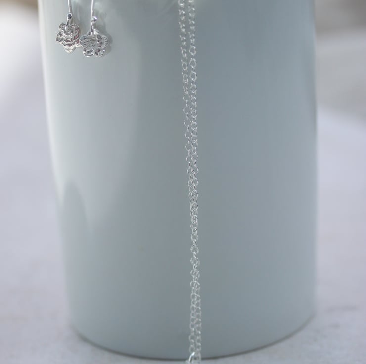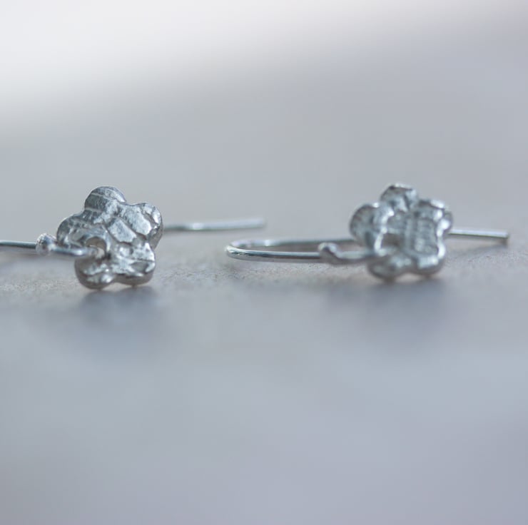 Silver flower earrings with lace pattern. These pretty earrings are handmade from recycled fine silver and feature a lovely lace pattern texture.