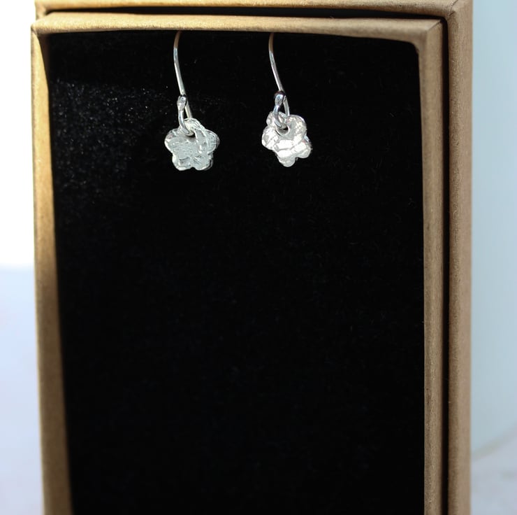 Silver flower earrings come gift boxed in my Eco-friendly, logo-stamped gift boxes and plastic free packaging.