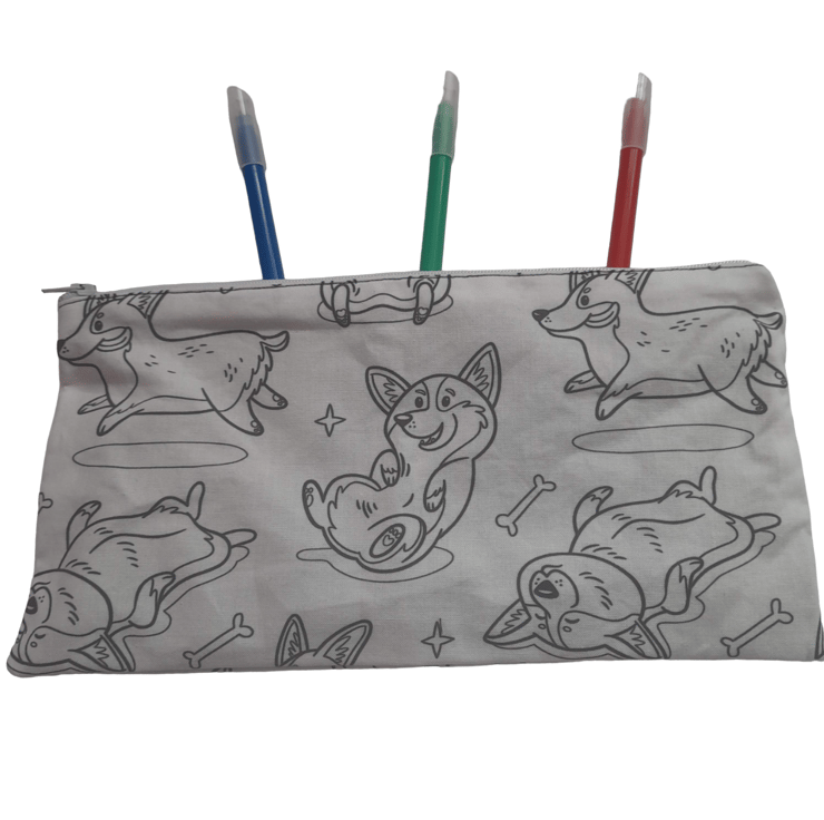 The pencil case has a cute corgi design. A perfect gift idea!