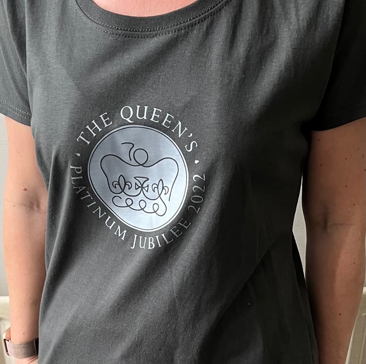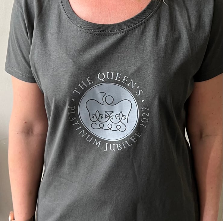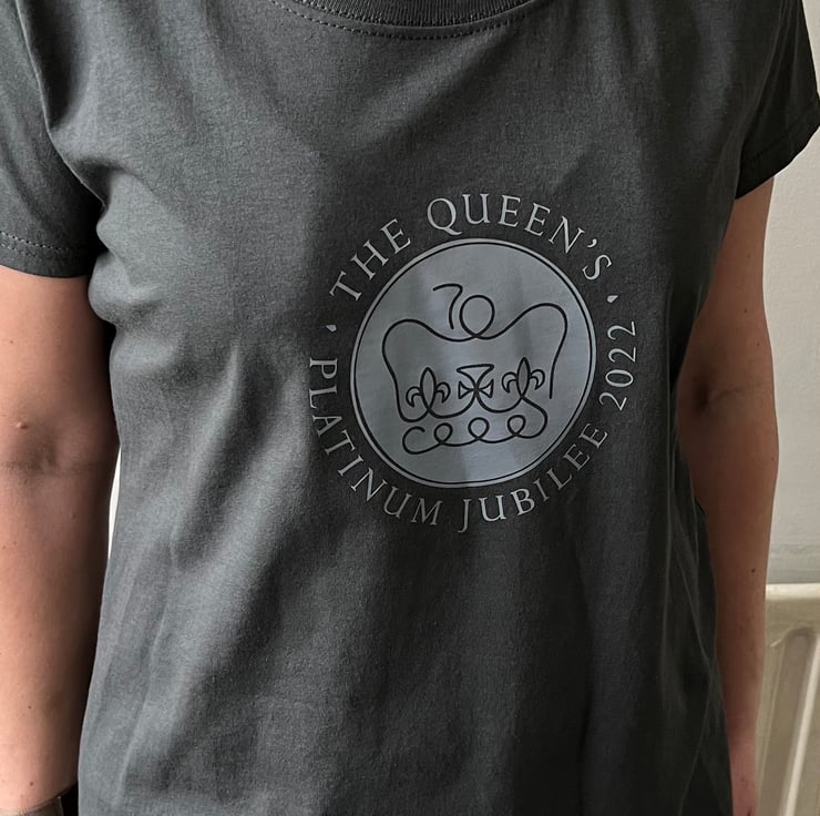 Dark Grey Hand Crafted Customisable Women's, Men's & Kid's Commemorative Merchandise - T Shirt - The Queen's Platinum Jubilee 2022