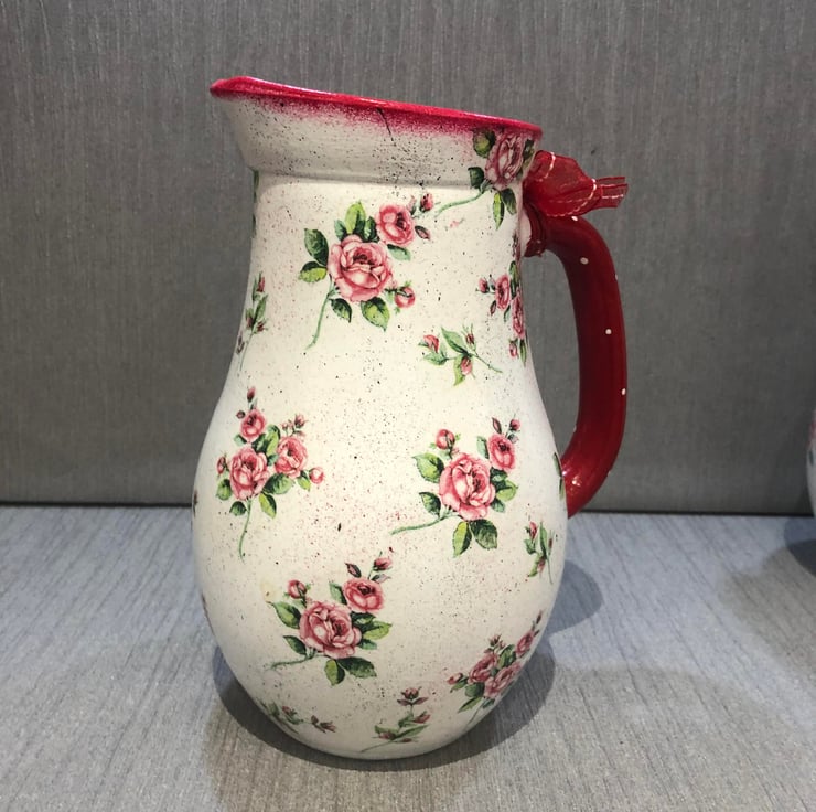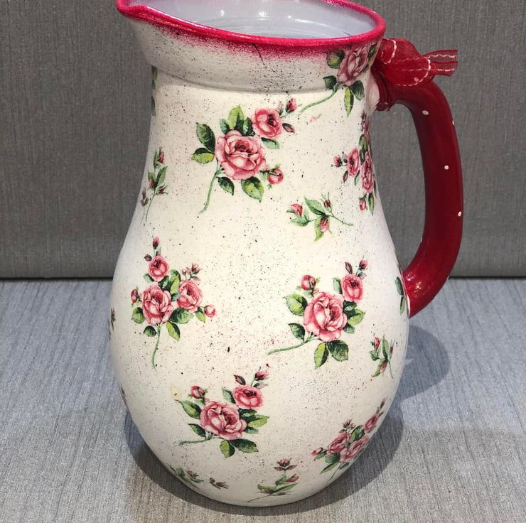 Decoupage Glass jug Vase - Floral Red floral - Shabby Chic - Gift for Home - Gift for Mum - Gift for home. - Red flowers