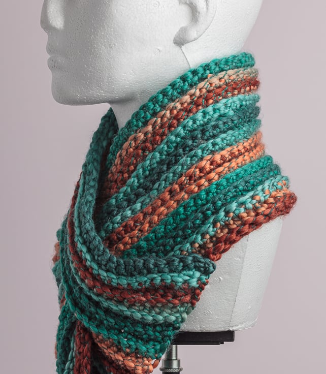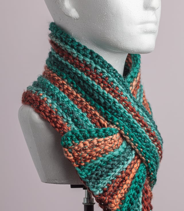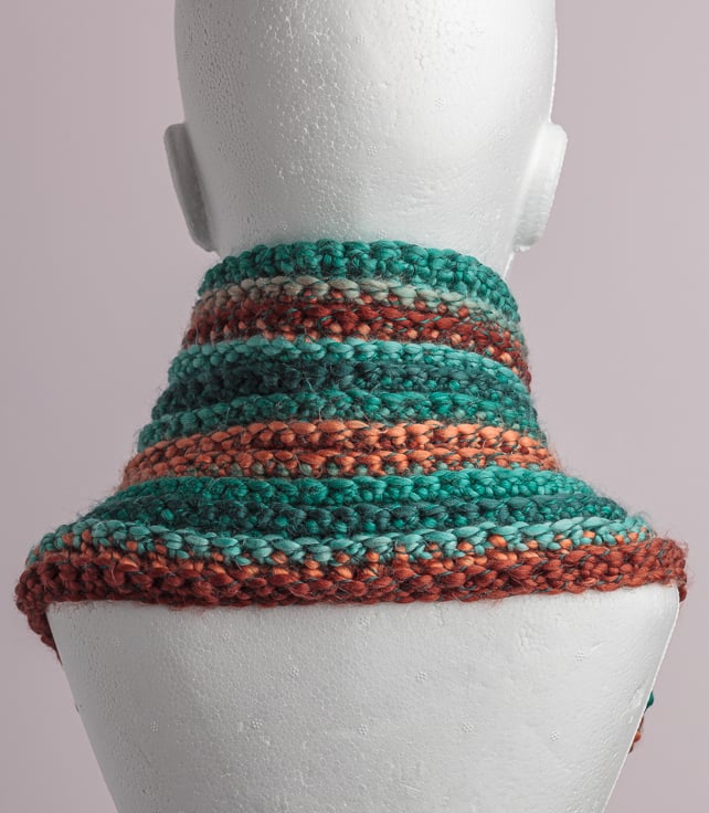 I have handmade this crochet cowl with 100% polyester yarn in a super-bulky weight (no animal fibres).