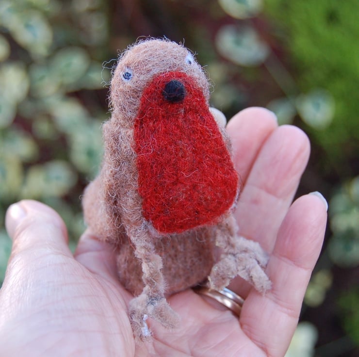 A cute robin made by needle felting wool fibres. Ready for your Christmas display.