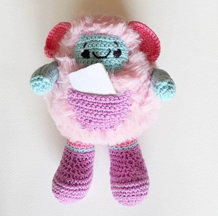 This cute monster has a serious hunger for worries! He has big ears to listen and a pouch on his tummy to put your worries in. He also has big boots to help you with all confidently into any situation.